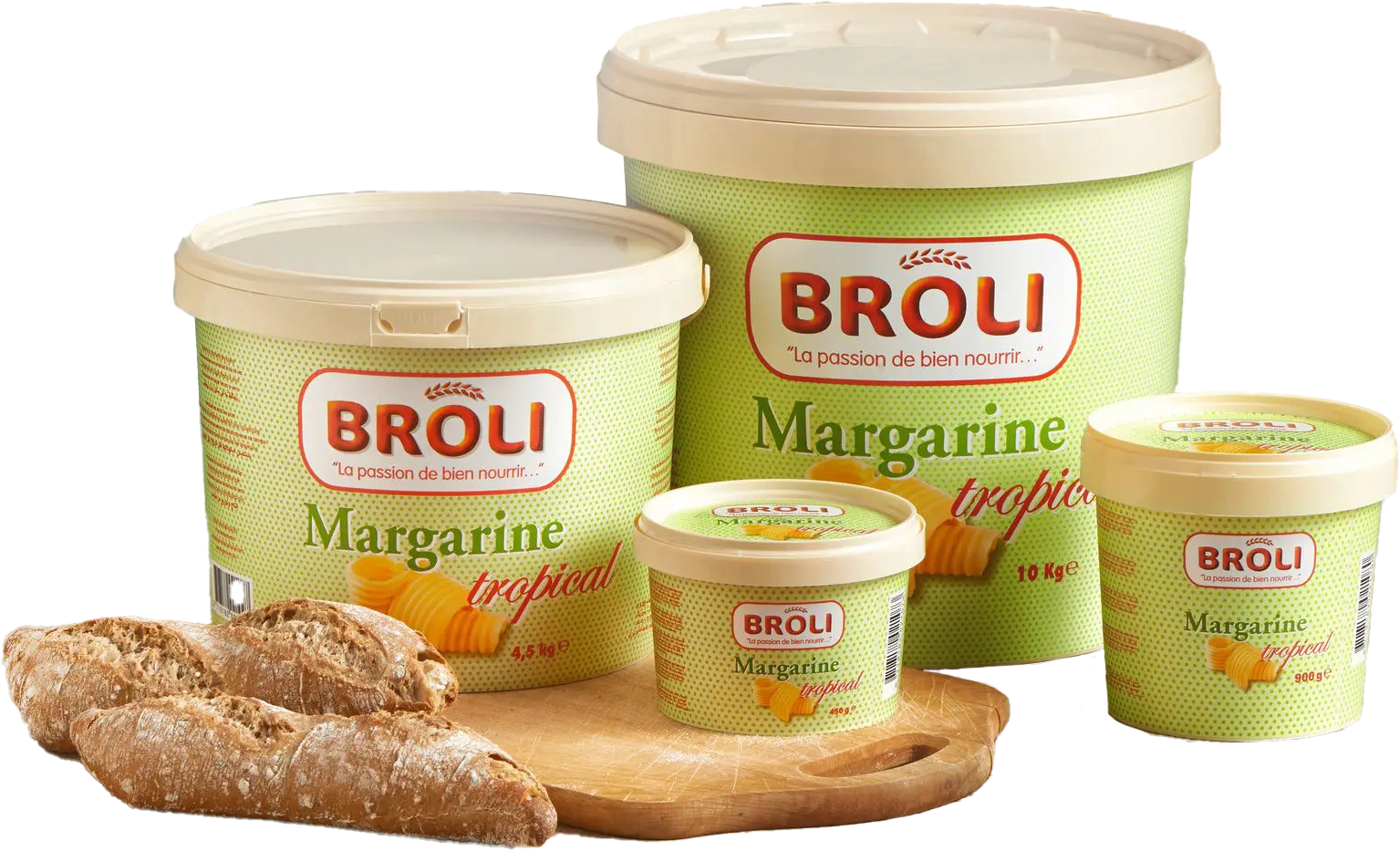 Broli Margarine is distributed globally through NGM International. In regions like Cameroon, 10 kg formats are offered in supermarkets and wholesale platforms